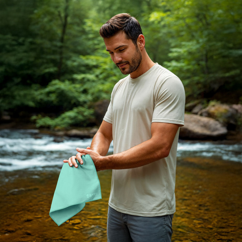 Super absorbent DRYKI microfiber handkerchiefs wick away moisture quickly and discreetly, keeping you dry, clean, and comfortable. Embarrassment Protection™.